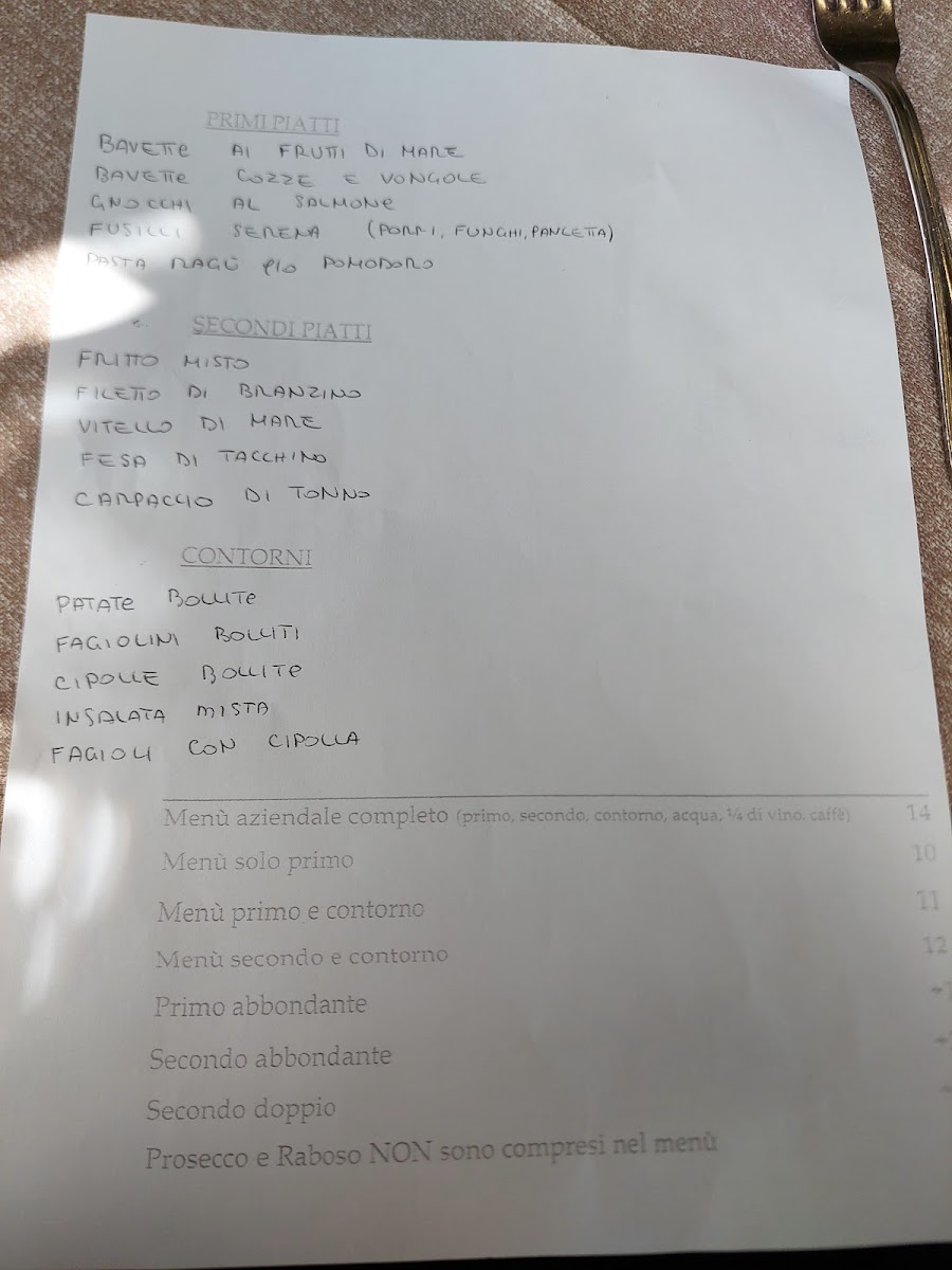 “ Personale gentile e disponibile e veloci. I piatti non sono però arrivati tutti e tre insieme. Fuori dal locale c’è un cartello che indica la possibilità di avere un menu aziendale ma attenzione che non vale per il sabato! Eravamo in tre e abbiamo preso un buon piatto di mezze lune (ravioli) con broccoli burro e salvia [quantità migliorabile] una pasta al ragù [un po’ troppo gustosa] e una buona ombrina con pomodorini e olive tagiasche. Nel complesso abbiamo mangiato bene con un prezzo giusto! ”